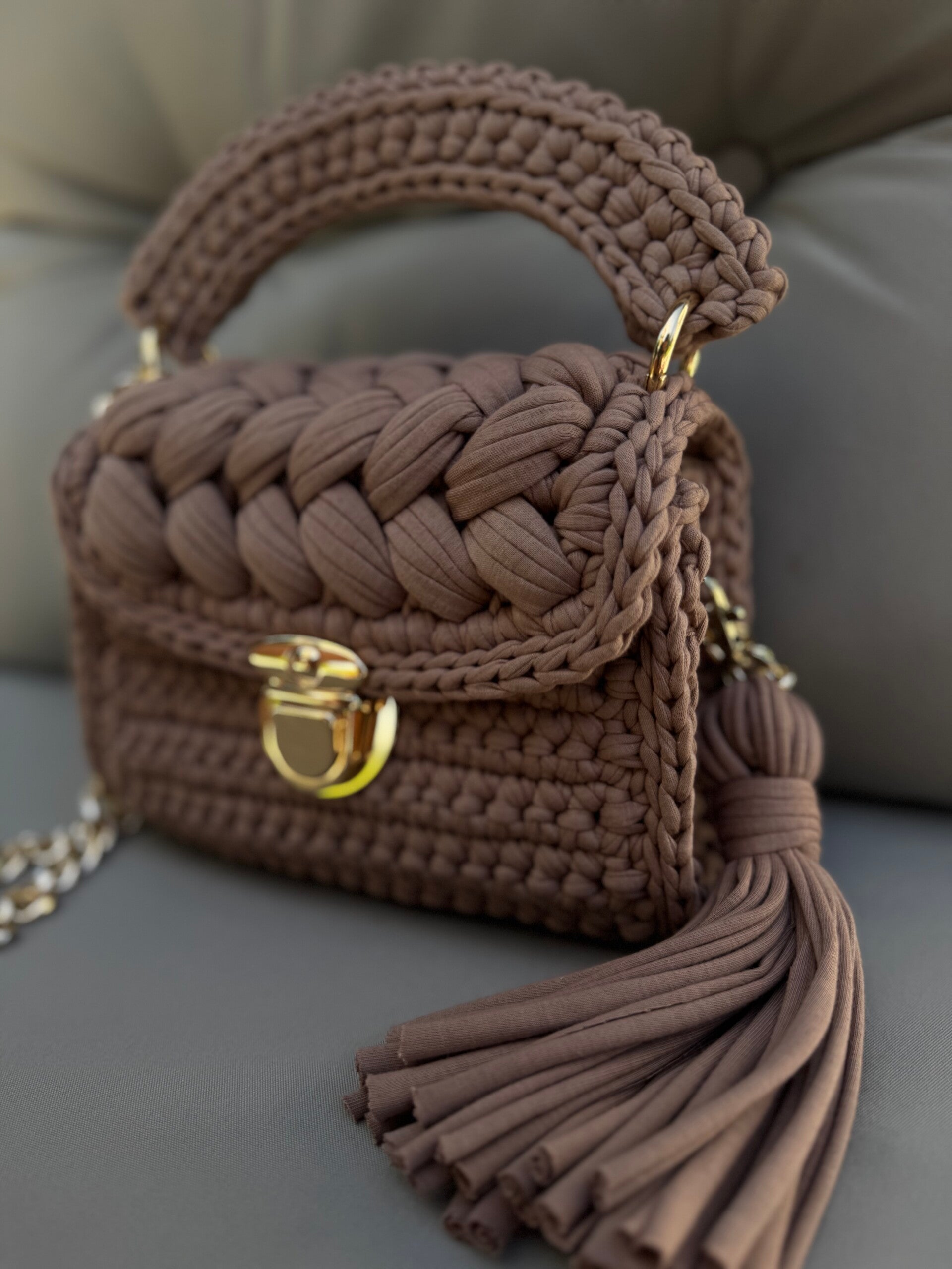 Ta ročno kvačkana torbica je super izbira za vsak dan. Je dovolj velika za vse nujne stvari, hkrati pa izgleda lepo in urejeno.