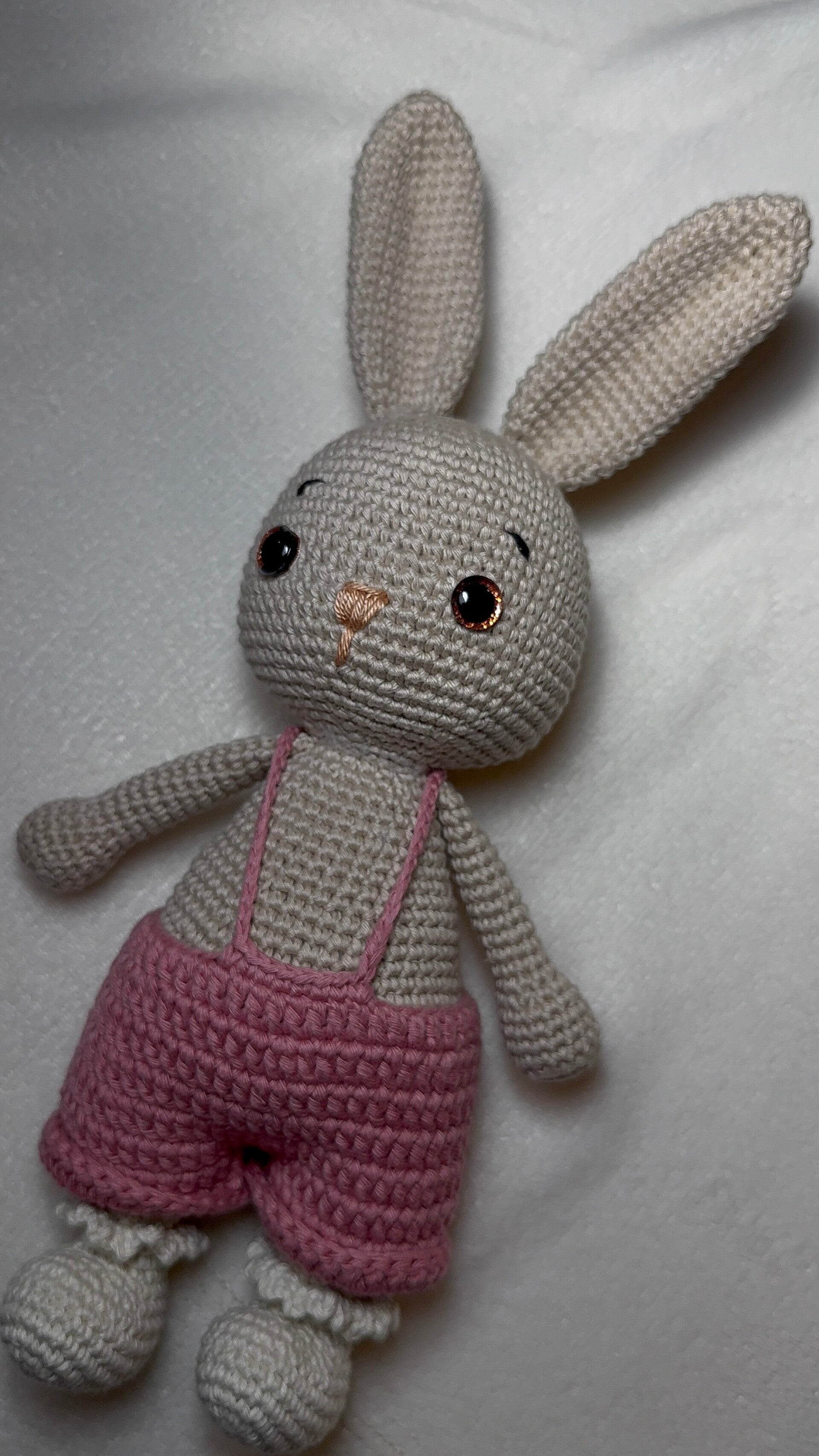 Prikupni kvačkani zajček je ročno izdelan dekorativni dodatek, ki paše v prav vsak dom.